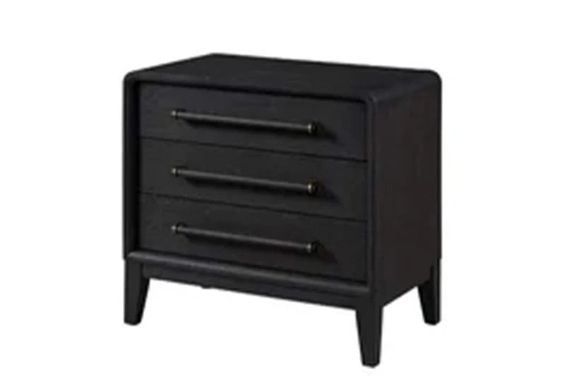 Banyan Waterfall Black 3-Drawer Nightstand with Sleek Metal Handles