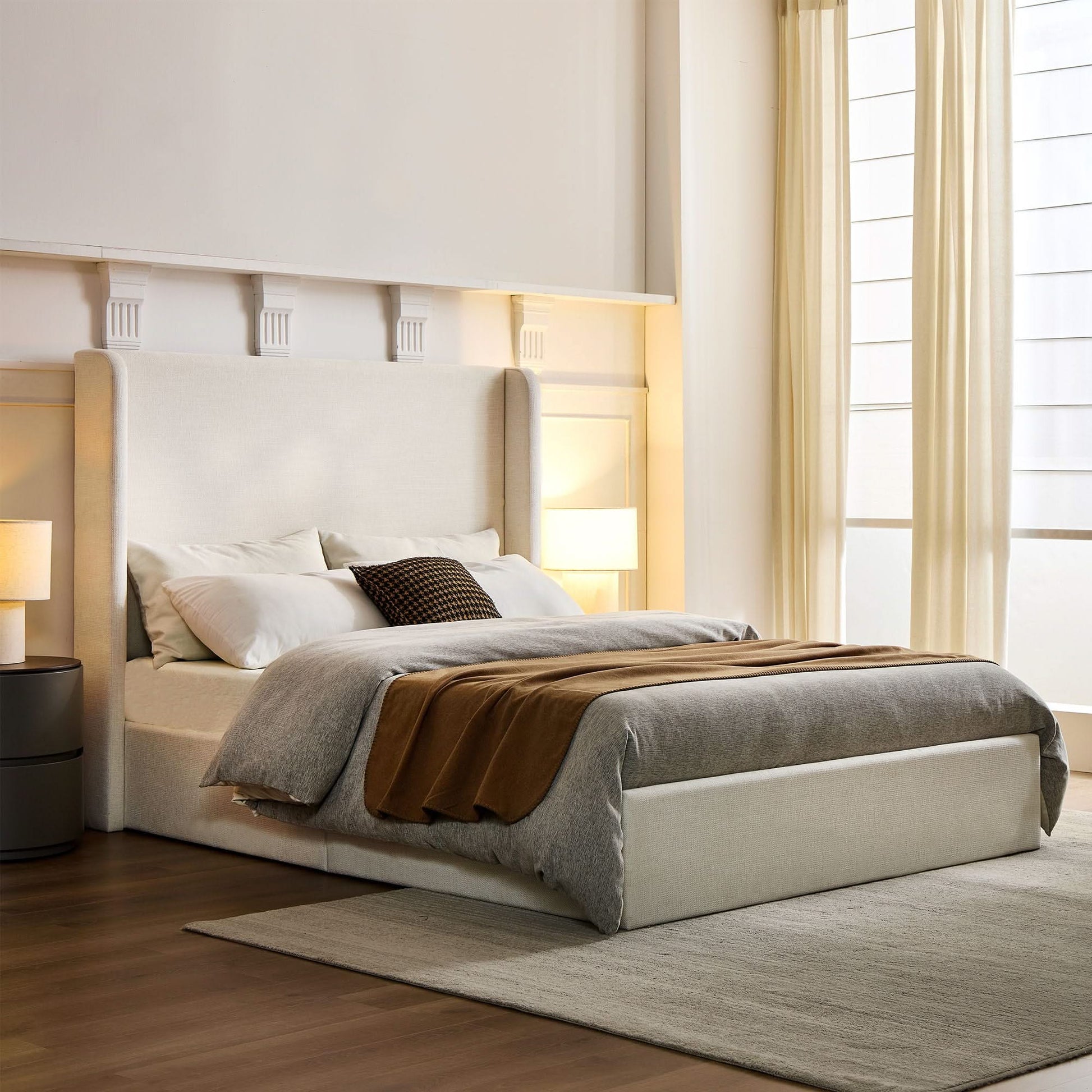 Carmen - Minimalist Upholstered Wingback Bed Frame With High Headboard