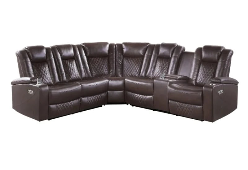Encore Black 3-Piece Power Reclining Sectional with Power Headrests & Storage Console