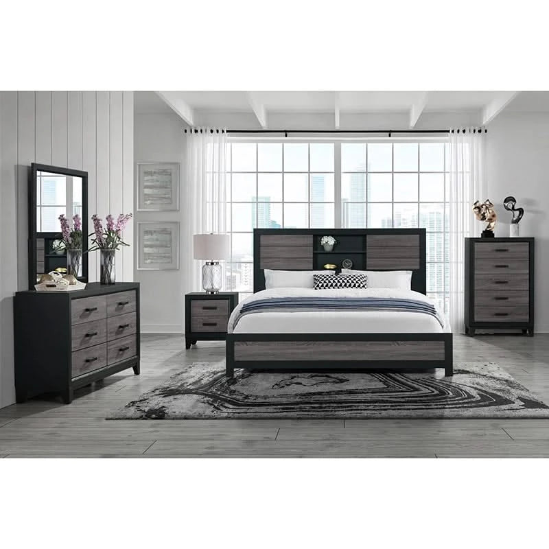 Lisbon Black/Gray Modern 5 PC Bedroom Set Includes Bed (Headboard, Footboard, and Rails), Dresser and Mirror