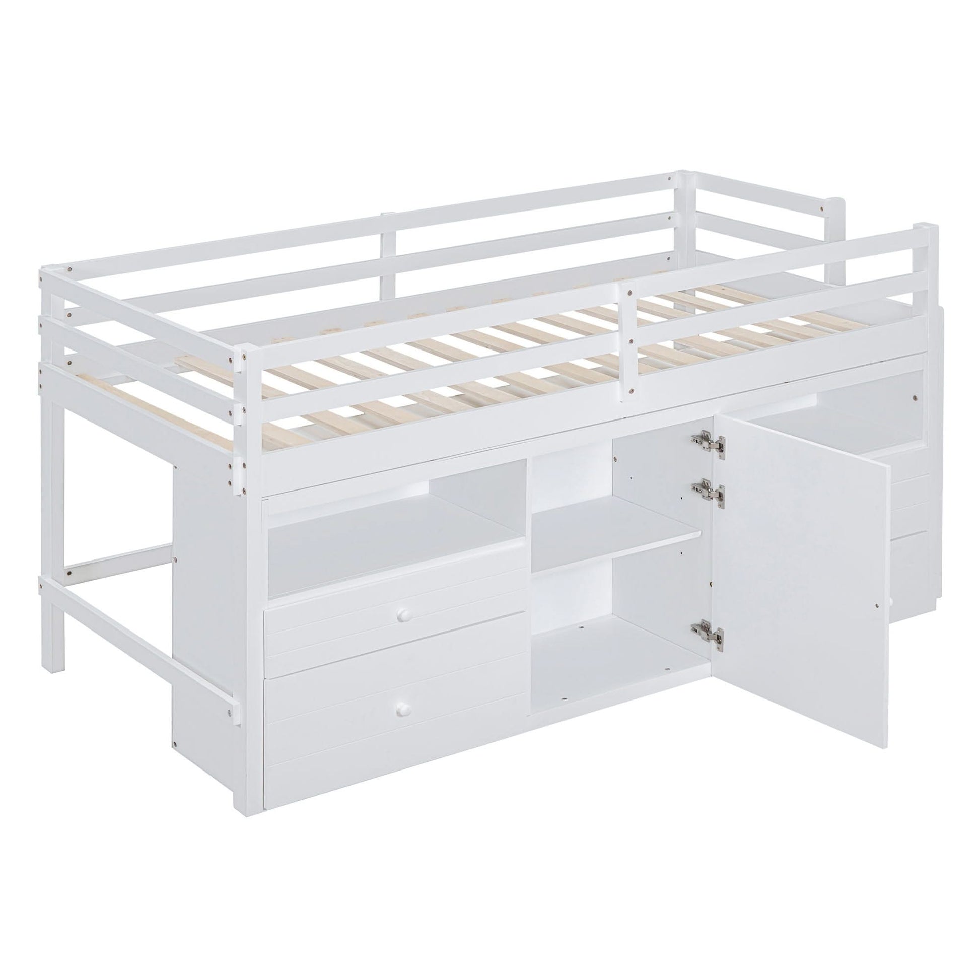 Loft Bed With 4 Drawers, Underneath Cabinet And Shelves