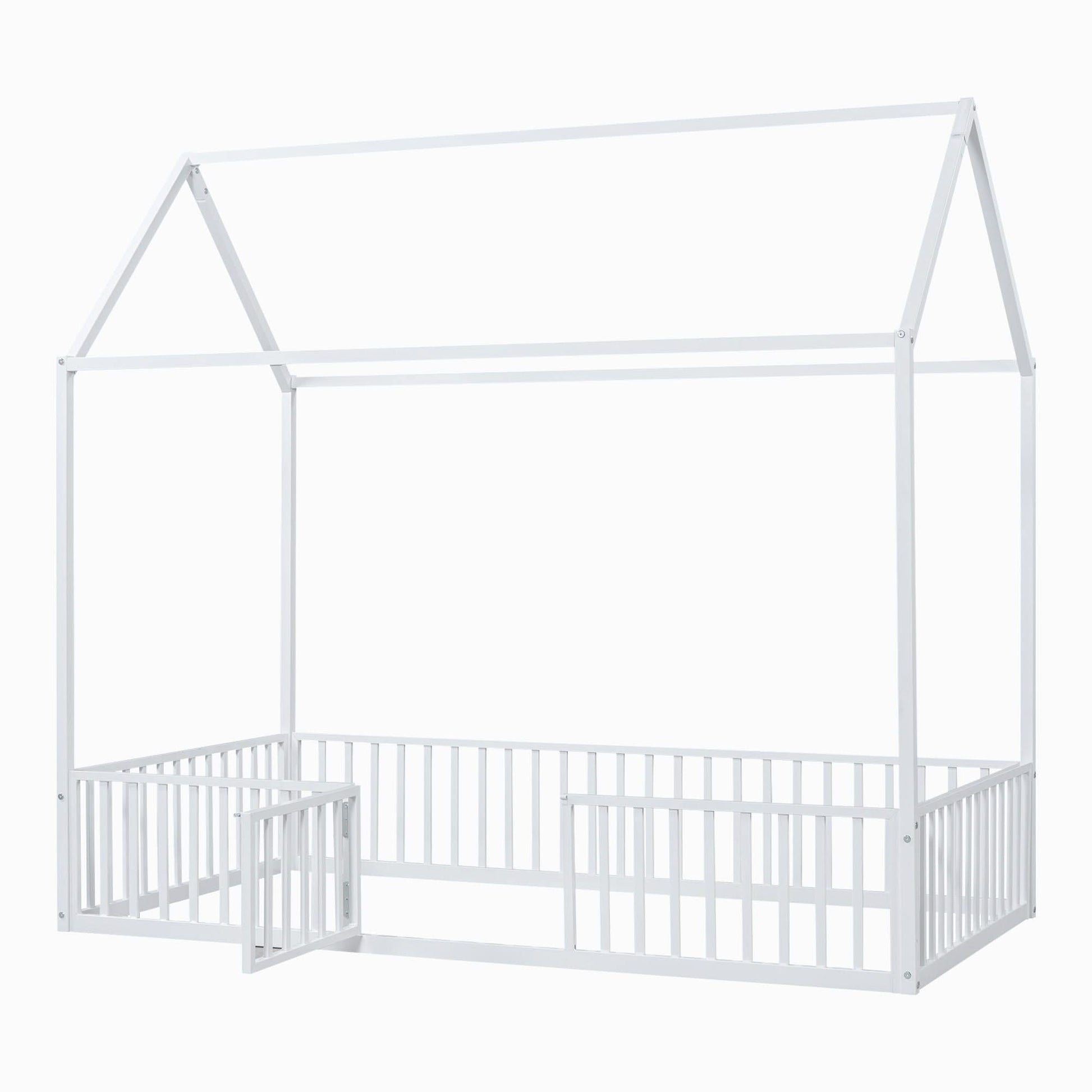 Metal House Bed With Fence And Door