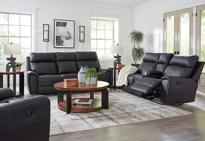Miles Gunmetal Black Reclining Sofa with Drop Down Table, Cup Holders, USB Charging, and Power Outlet