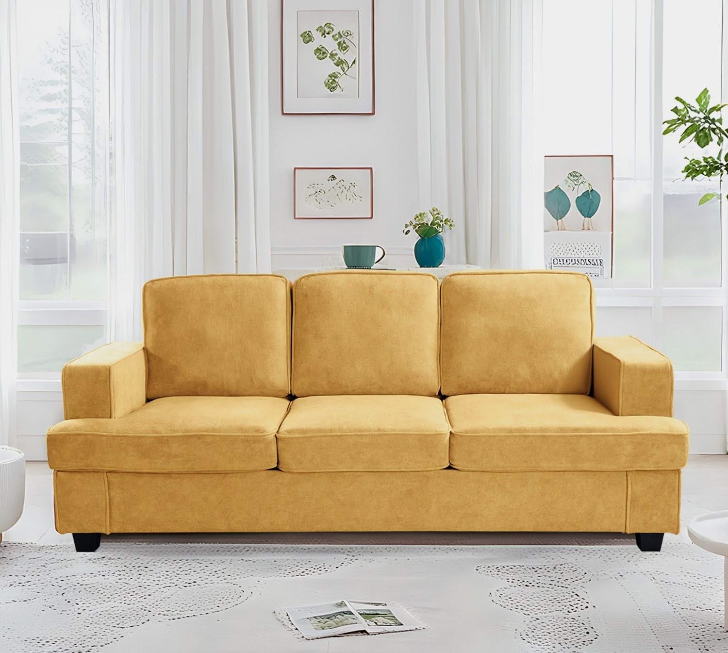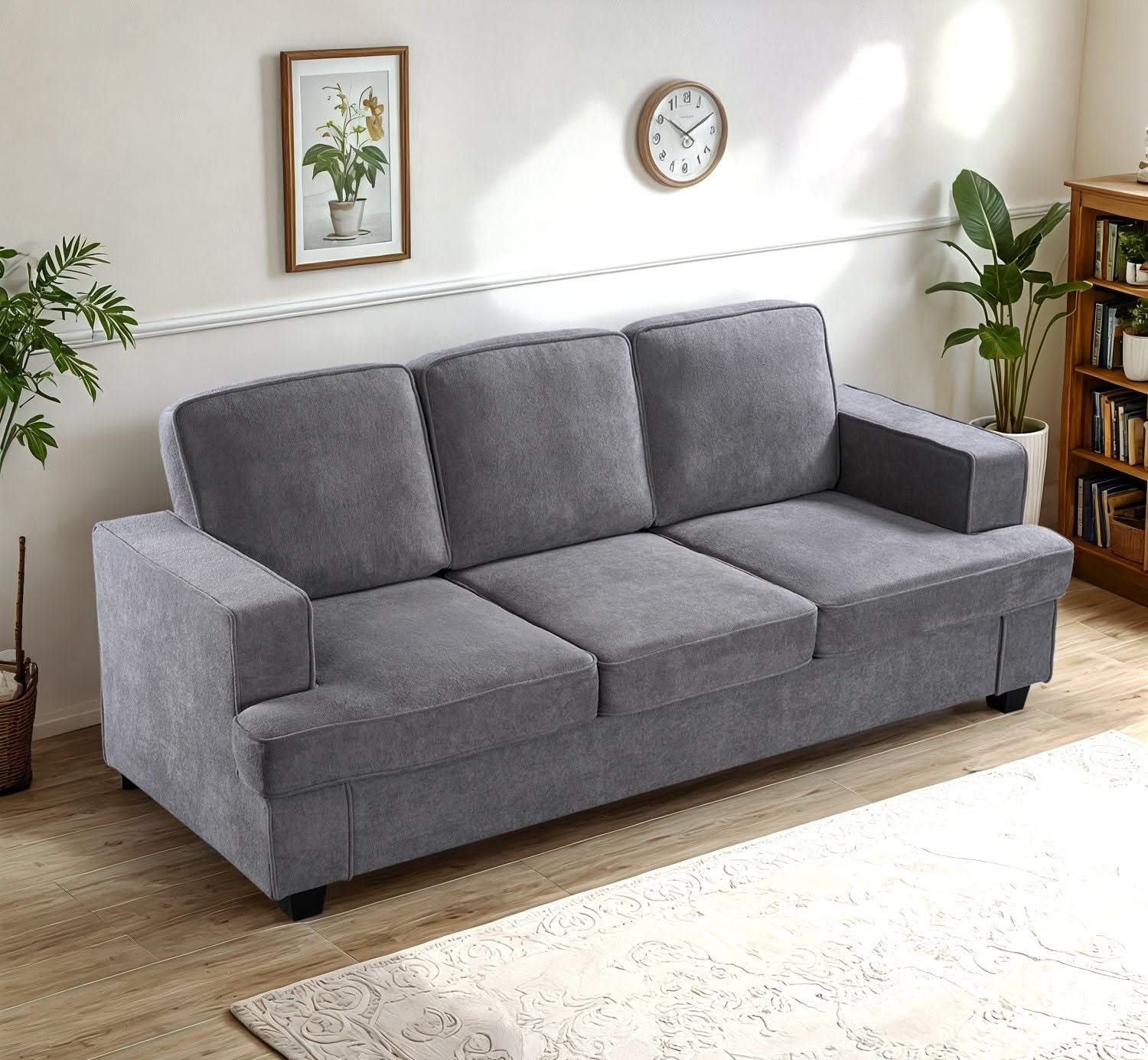Modern Sofa, Comfortable 3 Seater Couch With Deep Seating, Loose Back Cushions, Wide Arms