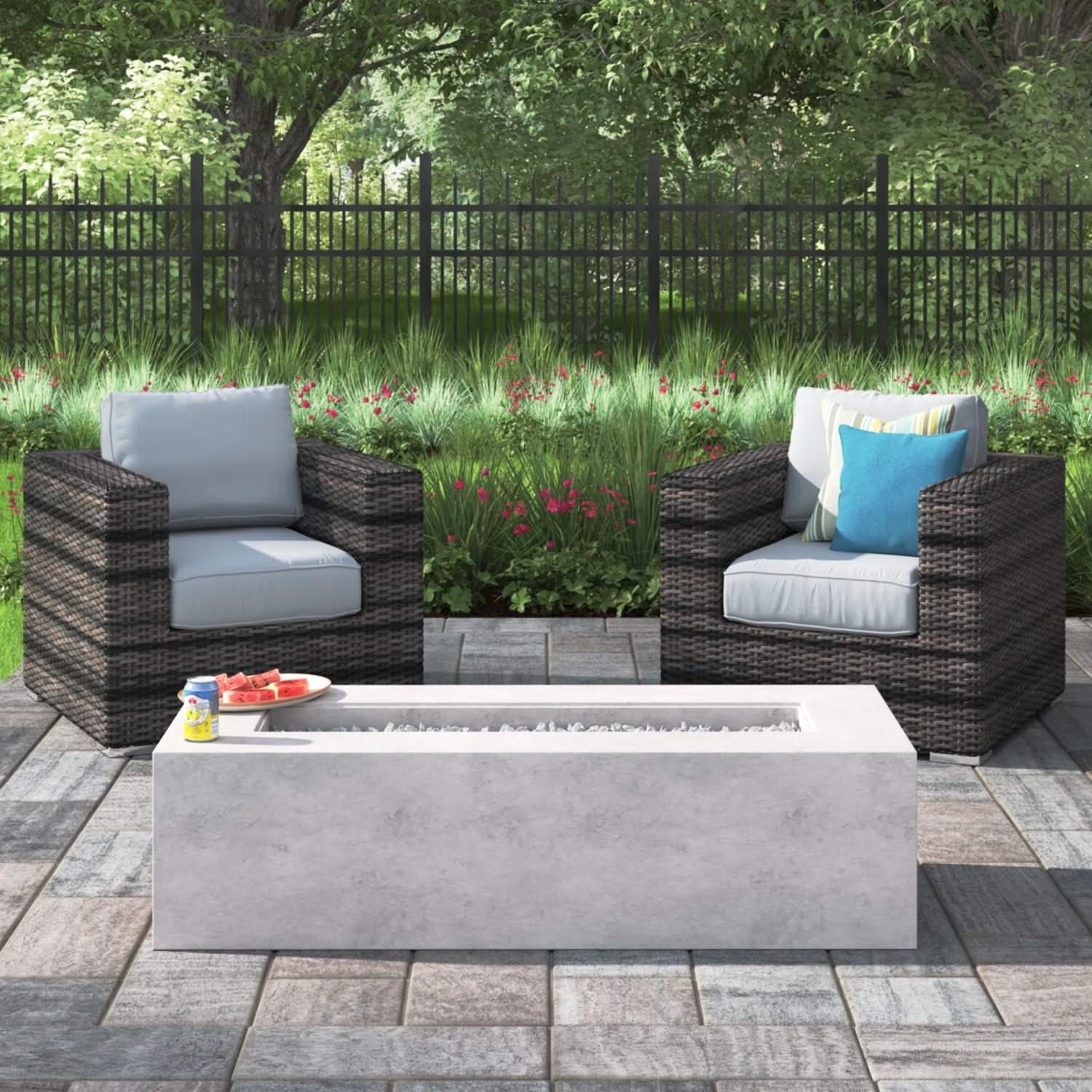 Outdoor Rattan Wicker Seating Set With Cushions 2 Person Patio Furniture - Espresso / Gray