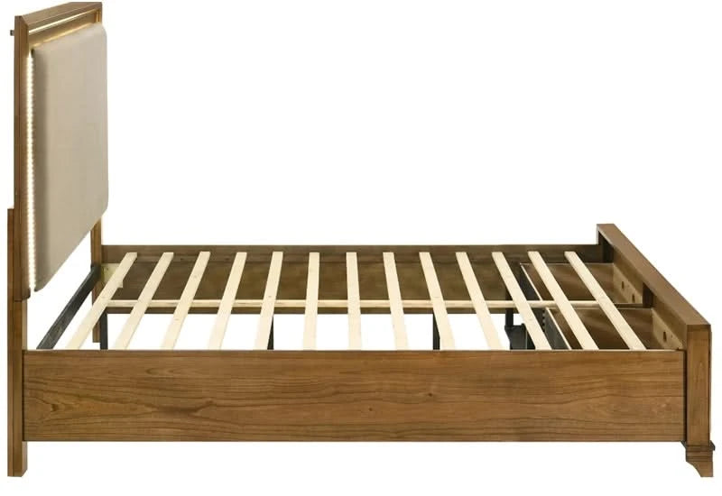 Talcott Honey Wood Platform Storage Bed with Lighted Upholstered Headboard (Queen or King)