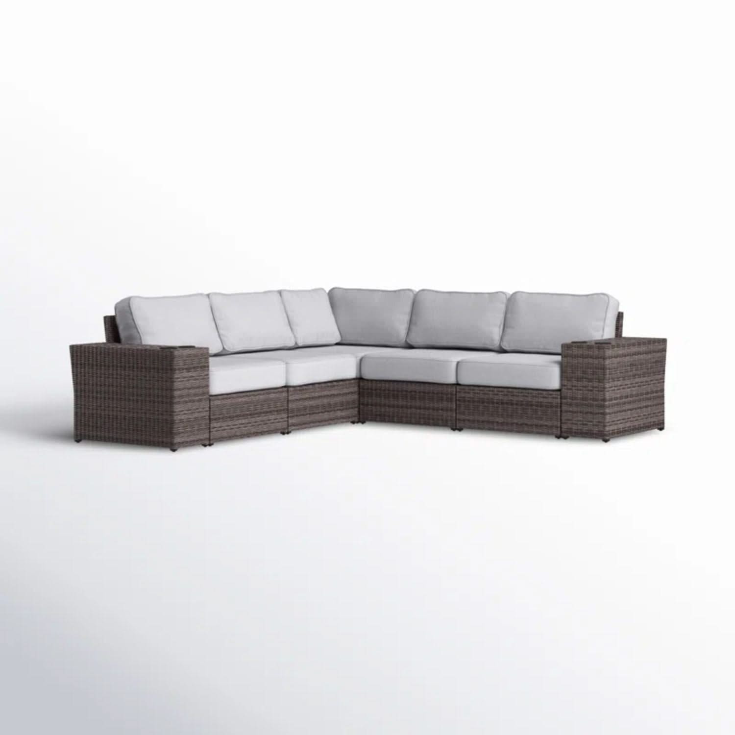 Wide Reversible Outdoor Sectional Sofa With Cushions - Brown / Gray